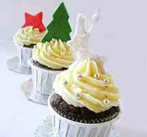 Σερβίρισμα: Τοποθετήστε μια μύτη "αστέρι" σε σακούλα κορνέ και γαρνίρετε με την κρέμα τα cupcakes. Τοποθετήστε στο κέντρο τα σχηματά σας όρθια και ρίξτε ολόγυρα από 2-3 ασημένιες μπάλες. Τα cupcakes διατηρούνται εκτός ψυγείου για 2 ημέρες και εντός ψυγείου για 4-5. Αφήστε τα να έρθουν σε θερμοκρασία δωματίου πριν τα καταναλώσετε.