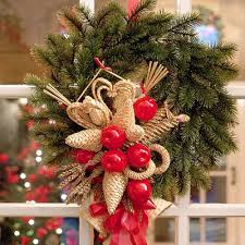 Βάλτε έξω από την πόρτα σας ένα κλαδί στολισμένο με μπαλίτσες. Με μικρά κομματάκια από έλατο (αυτά που συνήθως πέφτουν απ΄το δέντρο) στολίστε τα κυροπήγειά σας. Επίσης, μπορείτε να χρησιμοποήσετε φύλλα από ελιά ή και γκι!