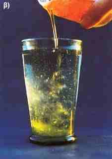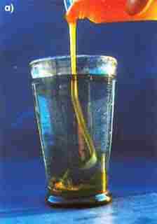α) το καθαρό μέλι χύνεται στον πυθμένα χωρίς να διαλύεται εύκολα.