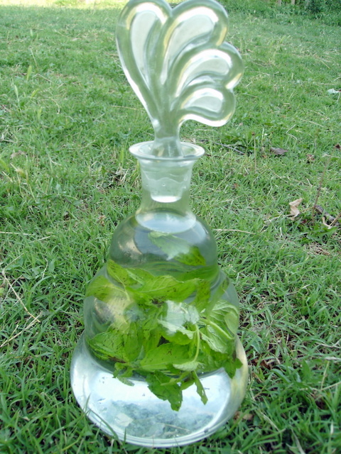 Τα καλοπλένουμε και αφού τα «σπάσουμε» λιγάκι τα ρίχνουμε σε γυάλινη κανάτα (ή μπουκάλι) γεμάτη με νερό. Τα σπασμένα φύλλα του δυόσμου αποθέτουν γρήγορα το άρωμα, την φρεσκάδα και την νοστιμιά τους.