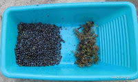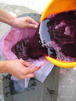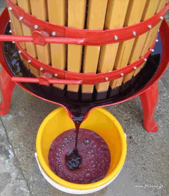 2. Διαχωρισμός και πίεση του σταφυλοπολτού. Μετά από 2-3 μέρες όπως είπαμε παραπάνω περνάμε στην επόμενη φάση, την διαδικασία της παραλαβής όλου του υγρού των σταφυλιών. Ανοίγοντας την κάνουλα αδειάζουμε όλο το υγρό από το δοχείο μας μέχρι να μείνουν μόνο τα στέμφυλα.