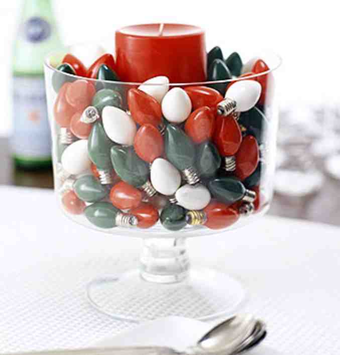 Για μια πολύ εύκολη εορταστική εμφάνιση βάλτε ένα κερί σε ένα μπολ των Χριστουγέννων. Μπορείτε να αναμίξετε και να ταιριάξετε τα κεριά και λάμπες και χρωματιτά στολίδια για να ταιριάζει με ιδιαίτερη διακόσμηση σας.